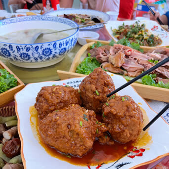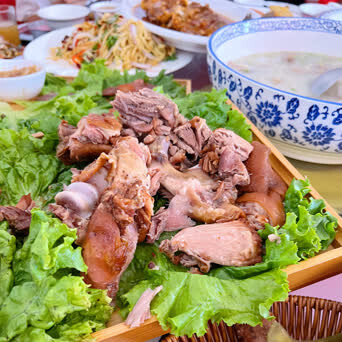 大肘子、丸子、炸里脊、烧鸡、毛肚、羊肉汤